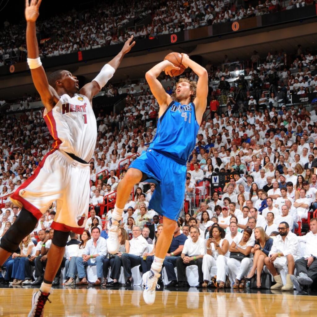 Dirk Nowitzki is known for his scoring prowess as a forward, but he also changed the perceptions of big men in the NBA due to his incredible shooting range. With a career 3-point shooting percentage of 31%, Nowitzki shot the ball at a scary rate, which made defenses pay. One of the most unguardable shots in the world is his signature one-legged fadeaway. He is a 14-time NBA All-Star and was the league’s MVP in 2007. His shooting helped the Dallas Mavericks win the NBA championship in 2011 and helped solidify the Mavericks’ incredible playoffs of that year.